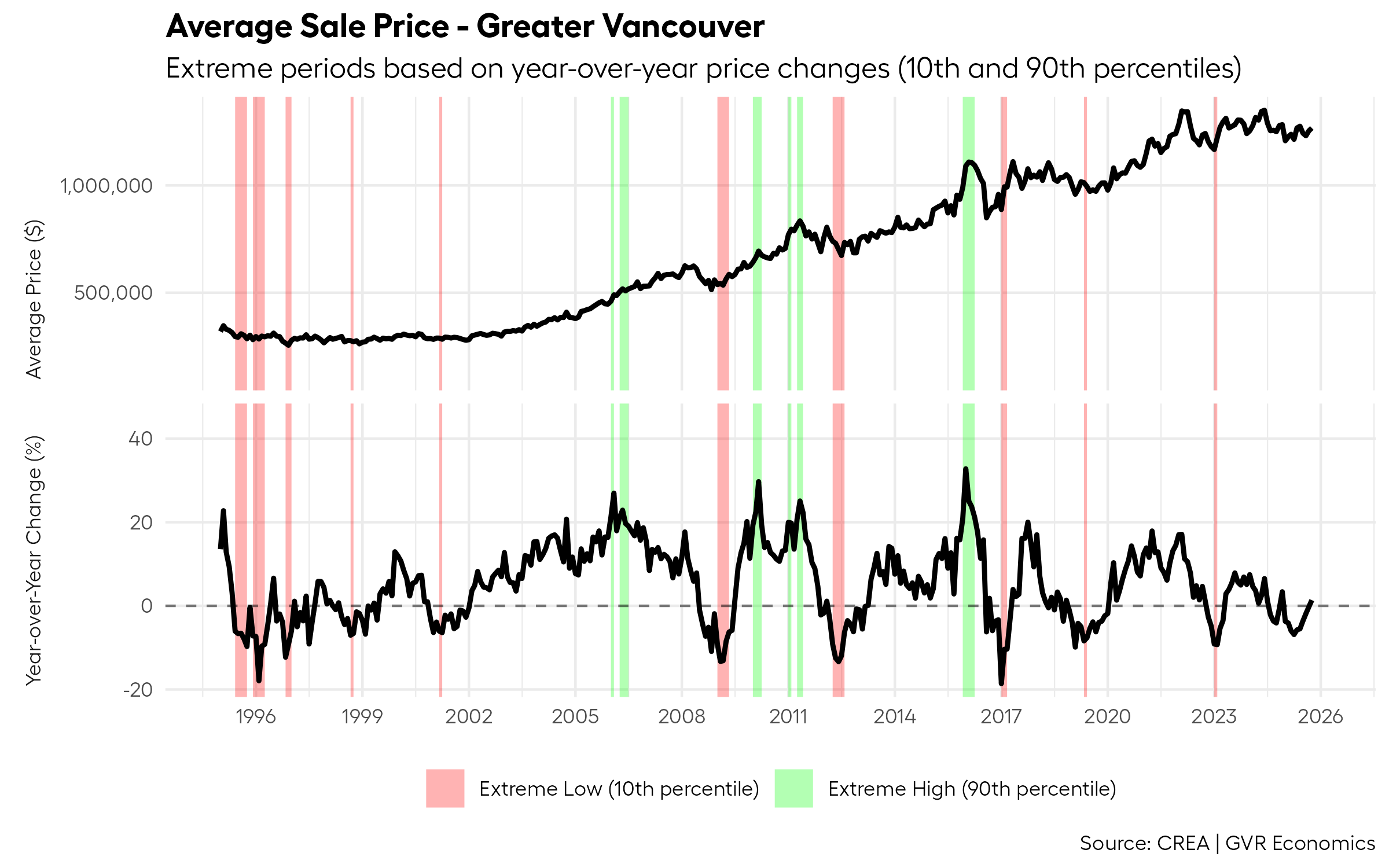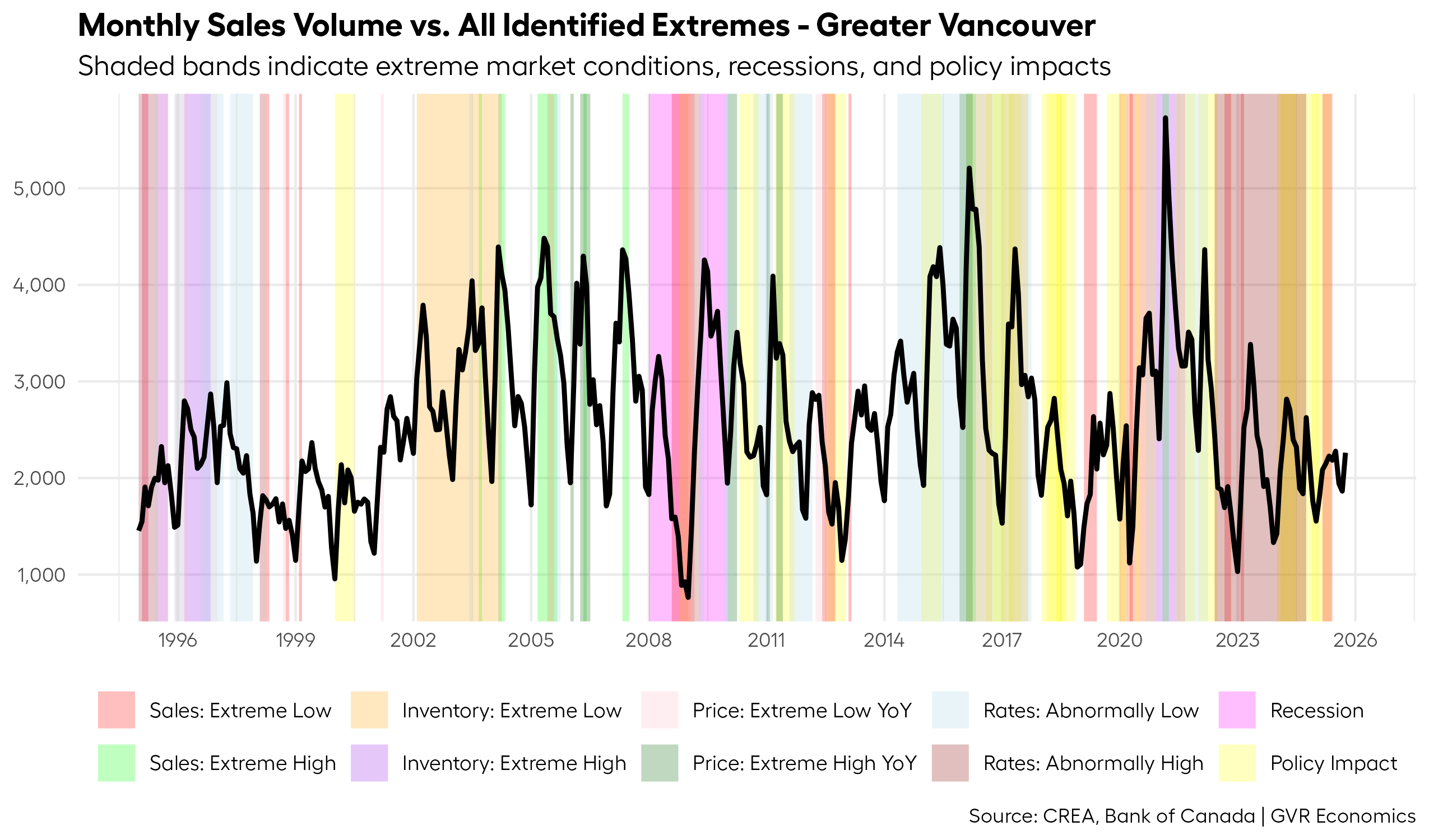 As someone who has keenly observed the dynamics of the Vancouver market for many years, I think this simple algorithm for identifying extremes lines up pretty well with my personal sense of market history.